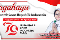 MAGETAN [ Jatimnesia.com] – Calon Bupati Magetan Hj. Endang Rusminiarti.M.Pd mengucapkan Selamat Hari Kemerdekaan Republik Indonesia Ke-79. ” Nusantara Baru Indonesia Maju”.